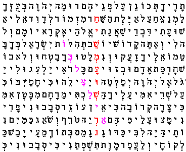 22 Psalmė 1-15 eil. Atgamintas tekstas be tarpelių: 45 raidės eilutėje