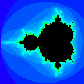 greitai tai įvyksta, pažymi atitinkama taško spalva. Todėl Mandelbroto aibė apsupta nuostabių, nepaprastai sudėtingų