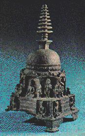 Kiekviename žingsnyje čortenas, - statinys, atspindintis indo-budistinį kosmosą su žeme ir dangumi, tuštuma ir amžina Visatos liepsna, saule, mėnuliu ir pasaulio šalimis. Simboliai ir varpo forma nurodo, kokiai aštuoneriopo kelio link tobulybės pakopai pašvęstas šis keistas kūrinys - taip derantis su pirmykštės gamtos žavesiu.