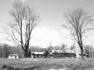 Į kiemą priešais stotį išeina vaikas, besilaikantis mamai už rankos, čiulpdamas pirštą.