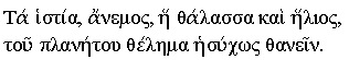 tad tuos rašmenis ir vertimą pridedu. Tai, pasirodo, buvo parašyta senovės graikų kalba: